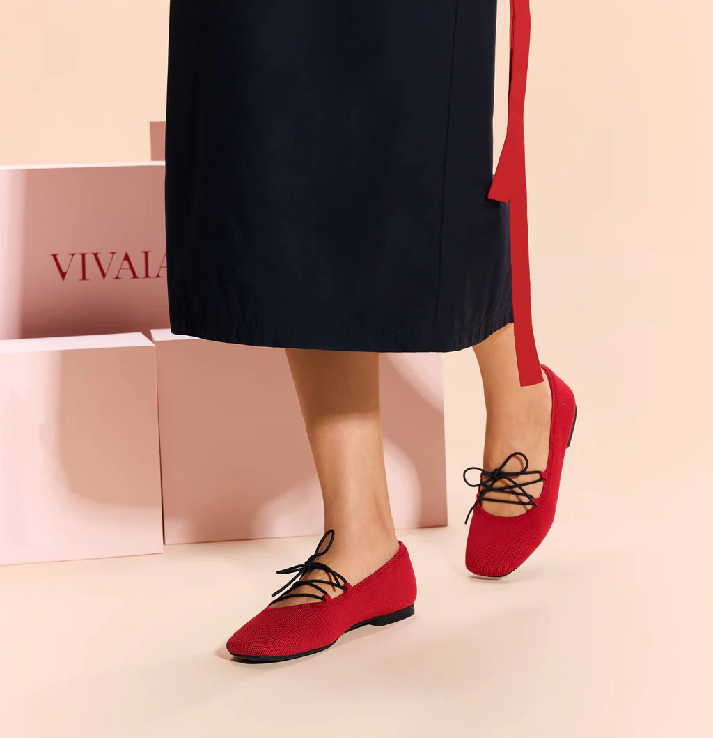 [Addriane] ポインテッドトゥ リボン付き フラットシューズ